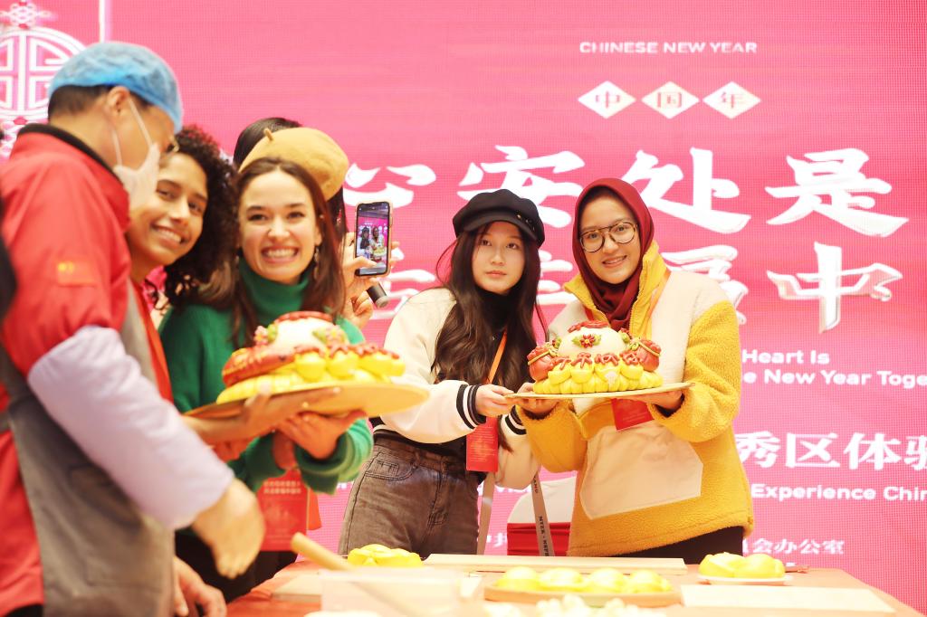 大家一起动手,制作具有浓郁中国年味的花馍。