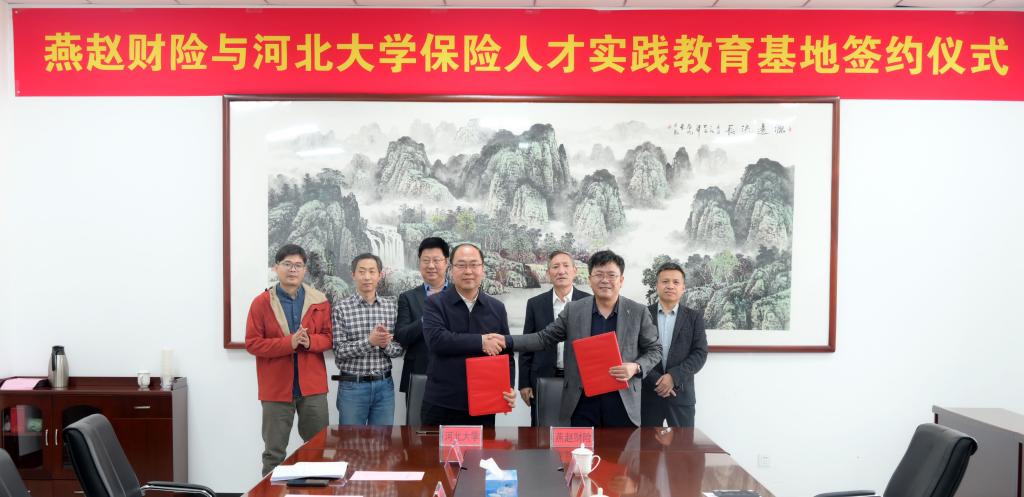 河北大学经济学院副院长尹成远,教师贾士彬,陈伟华,燕赵财险高级业务总监谢臻须,燕赵财险相关部门负责同志参加签约和揭牌仪式。