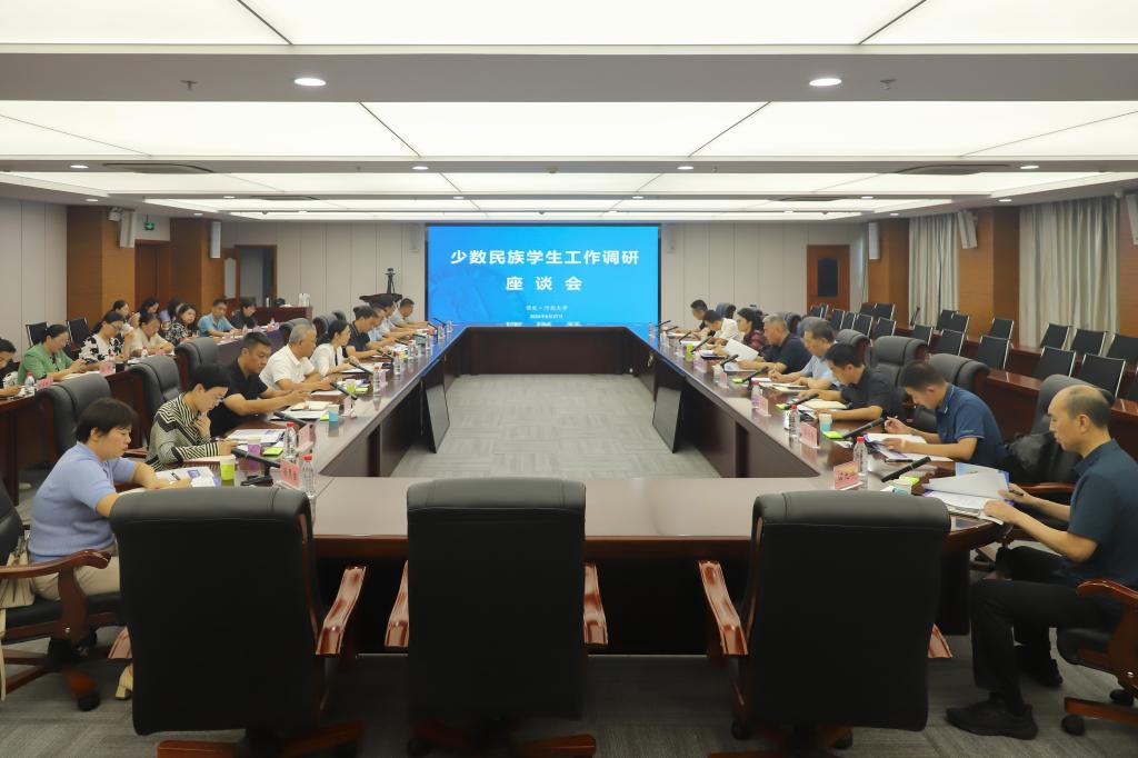 学校党委宣传部、党委统战部、党委学生工作部、党委研究生工作部和教务处、安全工作处、创新创业指导中心负责同志,专职少数民族辅导员及部分学院辅导员代表参加了调研。