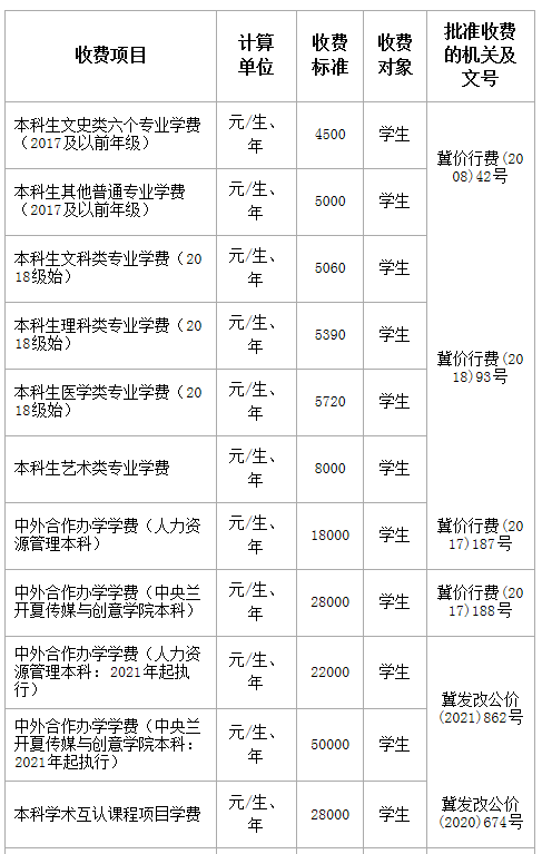 (一)学费标准