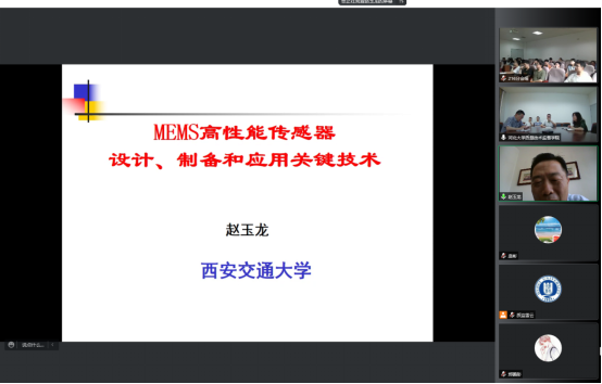 赵玉龙教授主要从事MEMS传感器及微纳制造理论和应用研究,相关成果已在航空航天、兵器、石油化工、能源以及危化品储运领域等多家企业得到推广应用,获得国家技术发明二等奖、教育部技术发明一等奖、陕西省科学技术一等奖等科研技术奖励9项。报告会上,赵玉龙教授作了关于“MEMS高性能传感器设计、制备和应用关键技术”的学术报告。赵教授首先介绍了MEMS传感器的定义、优势、加工工艺,并结合高新技术与关键领域的重大需求分析了MEMS传感器的研究意义;随后围绕高动态压力传感器、高频响加速度计、高G值加速度计、高精度石英谐振MEMS传感器、非晶碳膜传感器技术,介绍了其团队在特种MEMS传感器方面的研究工作及成果,分析了特种MEMS传感器的国内外研究现状、原理、关键技术及应用。