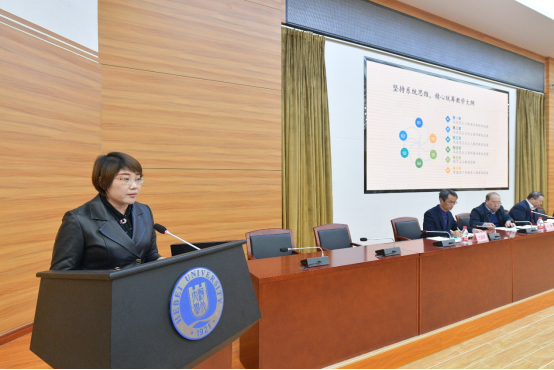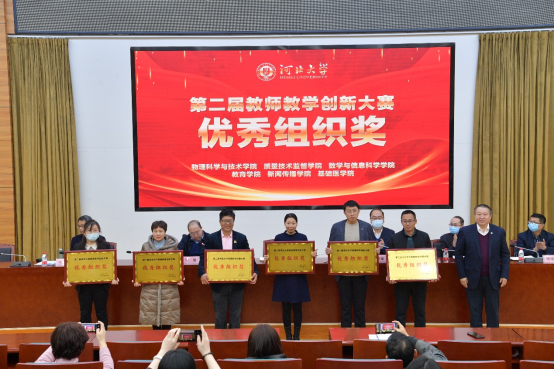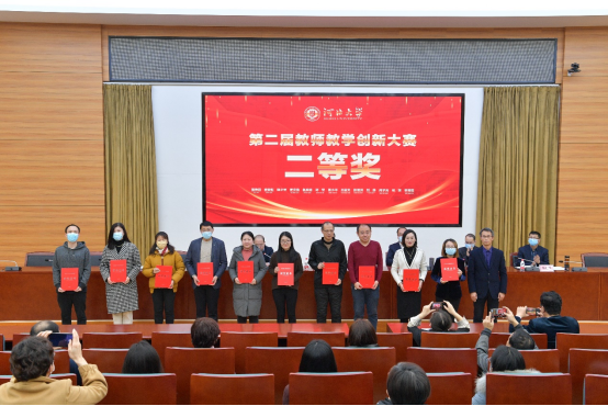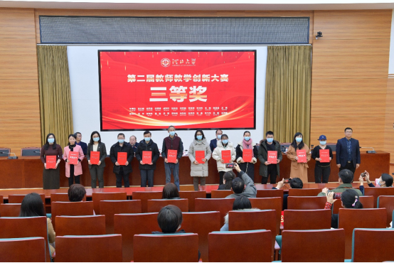 会议专题表彰了2021年课程思政示范教学案例(设计)获奖教师、第二届教师教学创新大赛获奖单位和个人。