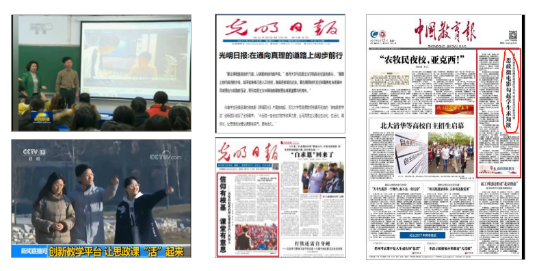 教研室主办三次全国性高校思政课微电影教学研讨会,120所高校来我校交流。8年来,我校微电影教学已经推广到京、津、冀、湘、鄂、豫、皖、苏、浙、闽、黑、吉、辽、陕、甘、宁、蒙等数十所高校。2015年微电影教学法入选“高等教育十大关键词”。CCTV-1、CCTV-13、CCTV-6以及光明日报等也对我校思政思政教学改革报道20余次。