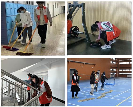 体育教学部在以体育人的同时,注重体育与劳动教育相结合,加强学生体育劳动教育。体育教学部教师与管理学院师生合作组织每周进行“同心抗疫、卫生校园”活动,对七一路校区新体育馆进行卫生大扫除,美化环境的同时也让学生们感受劳动的快乐。