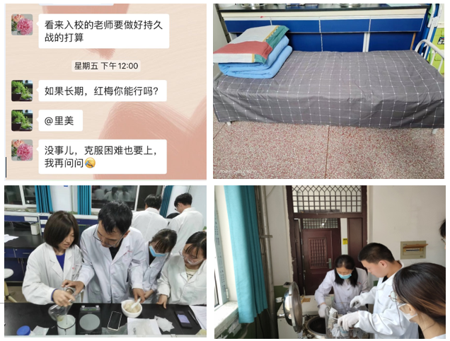 三位老师入校后便投入到了紧张的教学准备工作。他们详细研讨课堂教学细节,准备实验器材和物品,为线下复课做着充分准备。第一堂课是两个平行班、共60多名学生同时进行实验。由于线下课程耽误近一个月,为了保证“同时等效”,如期完成教学任务,两个实验模块同时进行,工作量比平时翻倍。老师们不停地穿梭在学生中间,紧盯学生实验过程,对学生的操作及时给予点评和指导,这堂实验课从晚上18:30持续到了近23:00。