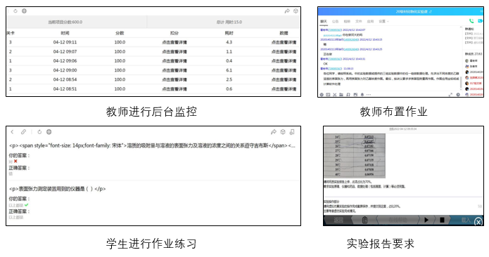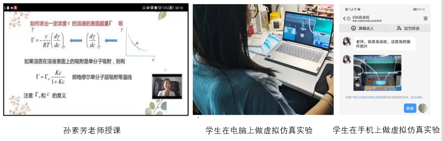 《基础物理化学实验1》共开设12个实验项目,利用2021年开发建设完成的虚拟仿真实验平台,采用线上模式开展实验教学。为最大限度保障线上教学效果,学院教师集体备课,精心准备课件,同时通过后台监控、课堂练习、在线实时交流等方式设置互动环节,调动学生学习兴趣。学生普遍反映这种模式新颖高效、具有一定挑战性,在课下还可以利用手机自助反复演练,预习和复习也很方便,教学效果良好。