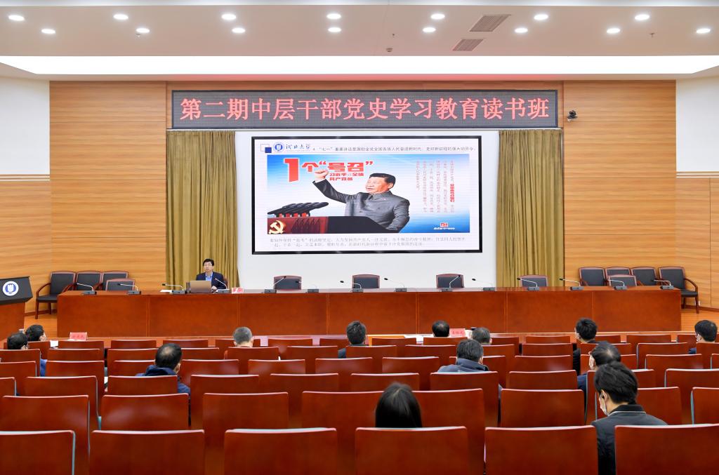 按照学校党史学习教育工作安排和中层干部培训计划,11月5日上午,第二期中层干部党史学习教育读书班开班式在五四路校区举行。党委书记郭健出席开班式并作专题报告,党委副书记、副校长王培光介绍了读书班基本情况并代表学校党委提出学习要求,党委常委、副校长徐建民主持会议。本期读书班学员参加了开班式并聆听了报告。