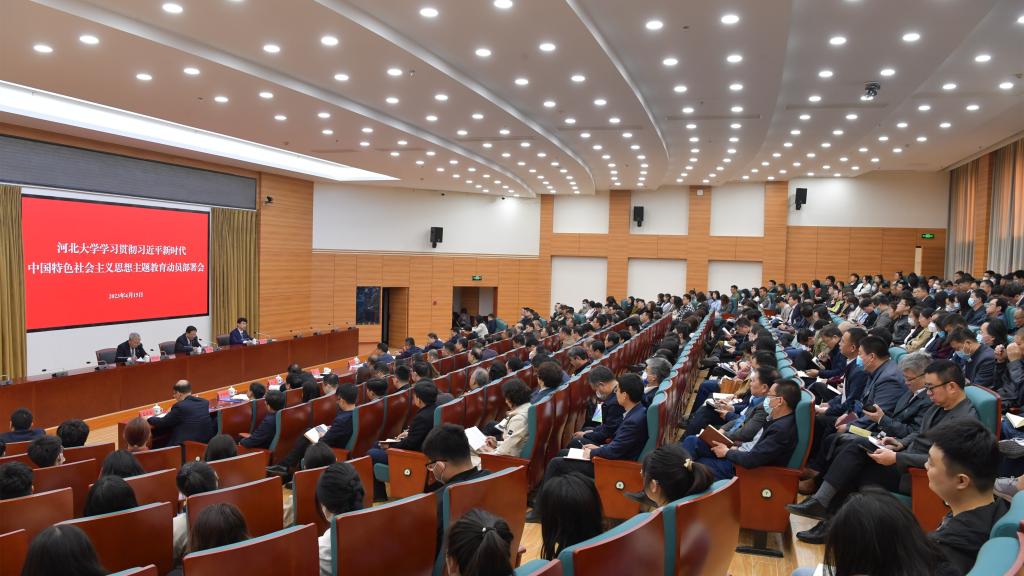 4月15日,河北大学召开学习贯彻习近平新时代中国特色社会主义思想主题教育动员部署会议,深入学习贯彻习近平总书记在中央主题教育工作会议上的重要讲话精神,全面落实河北省主题教育工作会议要求,对全校开展主题教育进行动员部署。省委第二十巡回指导组组长,省十二届政协常委,省乡村振兴局原局长、党组原书记李志刚到会指导并讲话。校党委书记、主题教育领导小组组长郭健主持会议并作动员部署讲话。省委第二十巡回指导组副组长、秦皇岛市人大常委会副主任郭爱民,指导组成员赵绍勇、程子杰、王东明,教育部党建工作联络员、保定学院原党委书记王军出席会议。