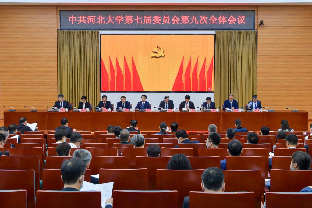 中国共产党河北大学第七届委员会第九次全体会议,于2023年6月5日在河北大学五四路校区召开。出席本次全会的有学校党委委员25名。学校纪律检查委员会委员和有关负责同志列席会议。邀请学习贯彻习近平新时代中国特色社会主义思想主题教育省委第二十巡回指导组负责同志列席全会第一次全体会议。