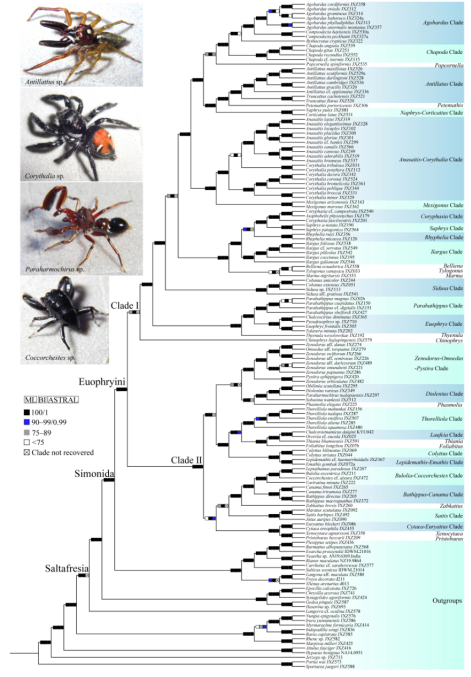 这项研究不仅深化了我们对斑蛛族跳蛛系统发育和生殖器官演化的理解,还为其多样化和生物地理研究奠定了坚实基础。通过构建可靠的系统发育框架,研究人员能够更准确地追溯斑蛛族跳蛛的进化历程,揭示其物种多样性可能的形成机制。此外,对生殖器官演化的深入研究有助于理解性选择和自然选择在物种进化中的作用,为生物地理学研究提供了重要的理论支持。这些成果不仅在学术领域具有重要意义,也为保护生物多样性、制定生态保护策略提供了科学依据。