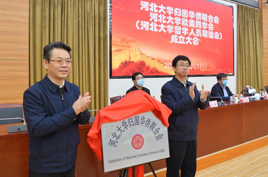 郭健、付辉东先后为河北大学归国华侨联合会和河北大学欧美同学会(河北大学留学人员联谊会)揭牌