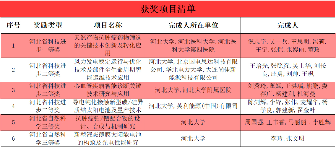 近年来,河北大学高度重视省科学技术奖申报工作,坚持创新驱动发展战略,紧紧把握“十四五”发展机遇,强化质量,多措并举,积极对接国家重大需求,主动服务国家及区域经济社会发展,创新能力不断提升,科研实力持续增强,产出了一批高质量科研成果,获得一系列奖励和荣誉。广大教师们始终与新时代发展同向同行,着力解决了重要科学问题和关键技术难题,为学校“双一流”建设和高质量发展增力添智。