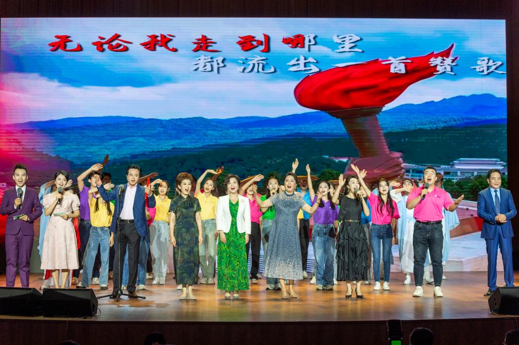 “莲池之夜”诗歌朗诵会最后,参演嘉宾与观众共唱《我和我的祖国》