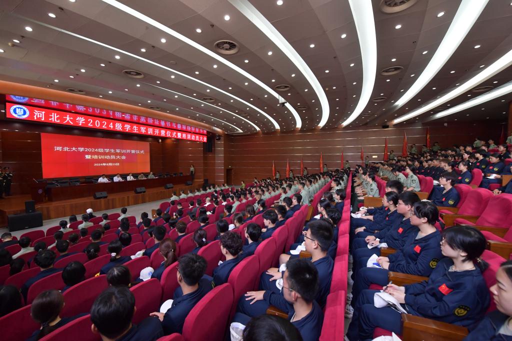 全体承训教官,国旗护卫队助理教官,各院系主管学生工作团委书记、学工办主任,2024级参训学生代表等近500人参加开营仪式。