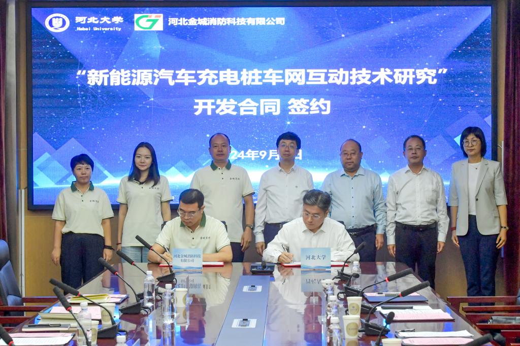 9月8日,河北大学与河北金城消防科技有限公司千万级技术开发合同签约仪式在七一路校区举行。校党委书记郭健,党委常委、副校长单耀军;河北金城总经理黄振卓,市场总监张高峰等出席仪式。