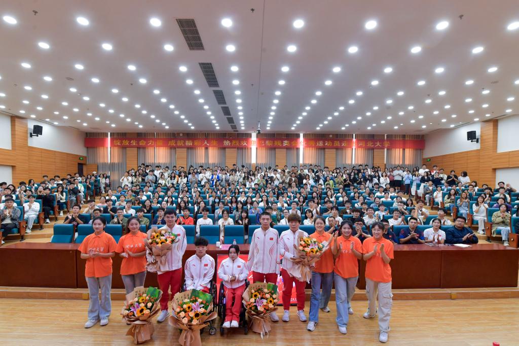 绽放生命力量,成就精彩人生。9月28日,在巴黎残奥会上取得优异成绩的河北省优秀运动员代表郭金城、赵帅、屈子墨、郭玲玲、米娜走进河北大学,与我校学生深入交流,讲述奋斗历程,诠释残奥精神。